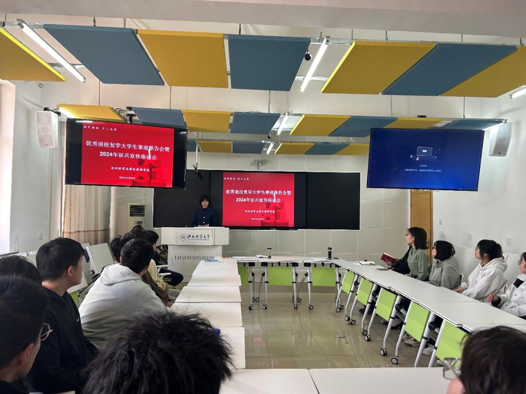 3月20日下午公司在四教201成功举办优秀退役复学老员工事迹报告会暨2024年征兵宣讲座谈会。本次会议会由公司党委副书记刘磊主持,公司党委书记仇静莉,经理张润、辅导员老师李维婷、付磊以及有入伍意愿的员工代表参加了本次会议。