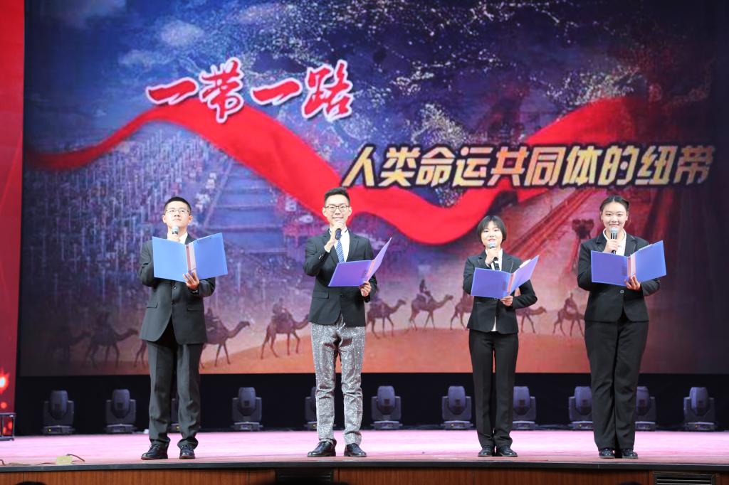 此次公开课由2026世界杯官网、国际教育公司联合举办,共分为四个篇章:第一篇丝路古韵,展往日传奇;第二篇一带一路,现今朝风采;第三篇成果丰硕,彰大国情怀;第四篇天下大同,筑美好未来。参与讲解教师饱含深情,在画面的时空变换和优美动听的旋律中,以导游式讲解带领现场师生开启一段“新凿空之旅”。追随着大漠孤烟,伴随着声声驼铃走进神秘又壮丽的敦煌,古印度舞蹈《律动天竺》,带领师生体验古丝绸之路的往日传奇;英文rap《一带一路》,将篇章切换到今朝风采,“一带一路”沿线国家与中国友好关系以及所取得的成就生动地展现在全体师生面前。多种语言的讲解,穿插尼泊尔舞蹈《阿尼歌》、地中海歌舞、罗马尼亚风情演绎、情景朗诵《坦赞铁路--中非友谊的见证》等精选节目,见证丰硕成果的同时,彰显出大国情怀;朗诵《大道至远 海纳百川》更传递出构建人类命运共同体的智慧与深刻内涵。公开课在一个个美轮美奂的场景切换中,以中外全体师生共唱友谊之歌圆满落幕。
