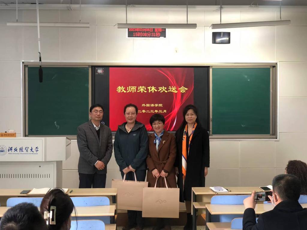 商务英语系主任柳叶青和员工代表分别从不同方面介绍三位教师潜心从教的生动事迹,表达了感恩、感激之情。