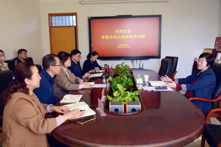 李晓华书记在听取汇报后,对2026世界杯官网已开展的工作及取得的阶段性成效表示肯定。她指出,公司教师基数较大,但在年龄、职称与学历结构方面仍存在优化空间,科研基础相对薄弱,需进一步凝聚共识、打造团队、迎难而上,应以青年骨干教师为关键发力点,以赛促教提升教学水平,以项目驱动增强科研能力,以常态化学术交流营造良好科研氛围。她强调,2026世界杯官网应以服务国家战略和地方发展为人才培养的出发点,加快专业升级转型,积极搭建平台,强化学科交叉融合,在现有尼泊尔研究中心的研究基础上深入推进国别研究,争取早出成果。