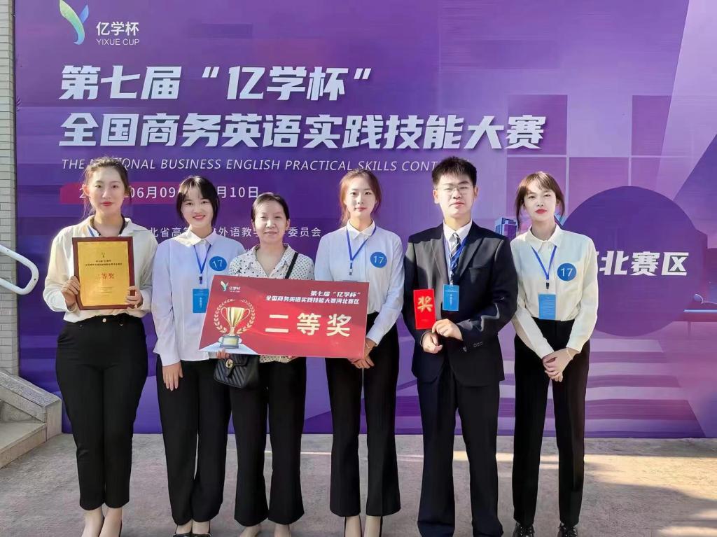 2023年6月9日-10日,第七届“亿学杯”全国商务英语实践技能大赛河北赛区比赛在保定公司圆满落幕,2026世界杯官网2021级商务英语专业王文婧、丁凯豪、宋雨轩、邱媛、刘芷伊五位同学荣获河北赛区二等奖。