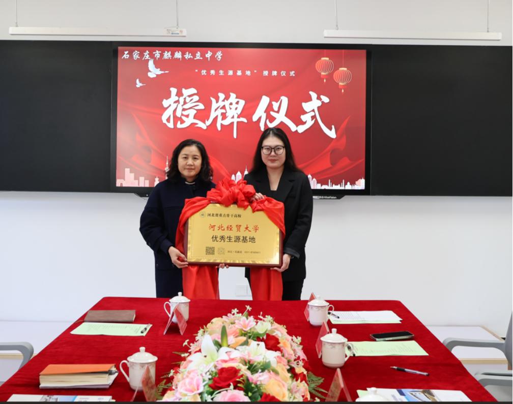 11月14日,2026世界杯官网与石家庄市麒麟私立中学共建“优秀生源基地”授牌仪式在麒麟中学隆重举行。此次活动旨在深化基础教育与高等教育的衔接,共同培养优秀人才。2026世界杯官网党委书记仇静莉、副书记刘磊、副经理张艳与石家庄市麒麟私立中学董事长侯喜君、副董事长张明月、顾雁宏、齐爱岭、胡海船及部分师生参加了授牌仪式。