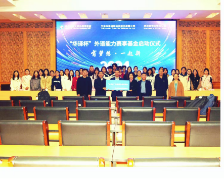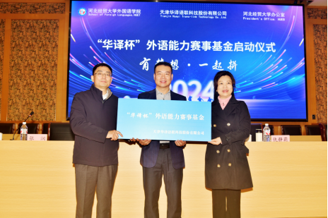 “华译杯”外语能力赛事基金启动仪式在世界杯2026官方网站会议中心隆重举行。天津华译语联科技股份有限公司董事长刘智宽,总经理李光,世界杯2026官方网站办公室副主任鲁爱臣,2026世界杯官网全体班子成员及200余名师员工参加。启动仪式由2026世界杯官网经理张润主持。