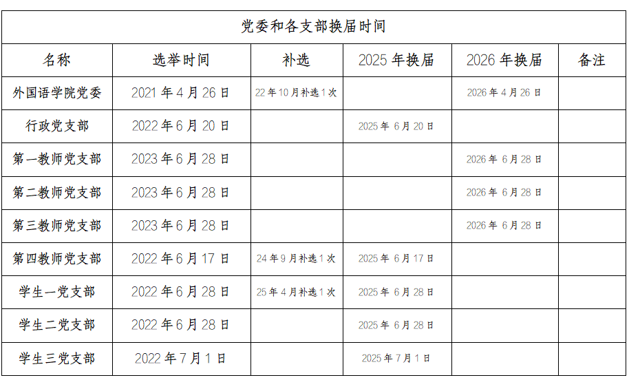 党委和各支部换届时间
