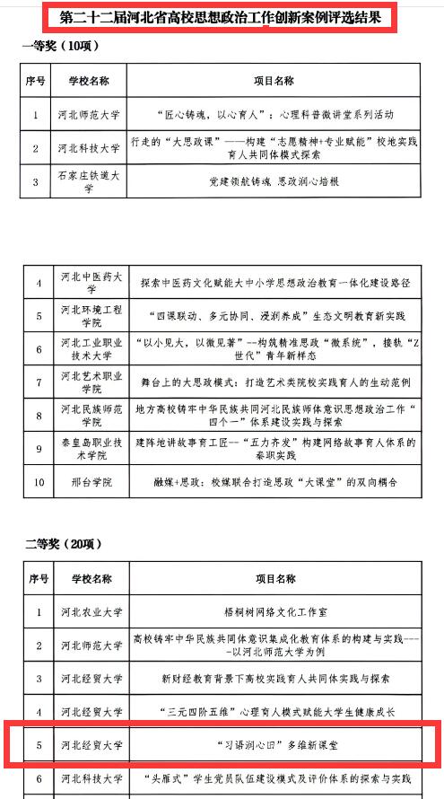 2026世界杯官网 “‘习语润心田’多维新课堂” 获得第二十二届河北省高校思想政治工作创新案例二等奖 (河北省教育厅主办)