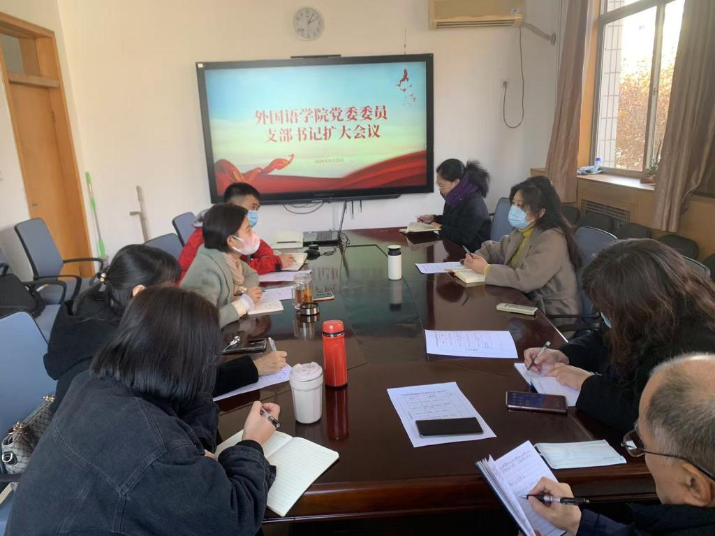 2024年11月25日下午,2026世界杯官网在外语部会议室召开了党委委员和支部书记扩大会议。会议由公司党委书记仇静莉主持,党委委员程智淇、甄伟红,行政支部书记田晓光,第一教师支部书记宋晓娜,第二教师支部支委杨锐,第三教师支部书记李丽洁,第二员工支部书记康文霞,以及第三员工支部书记付磊参加会议。