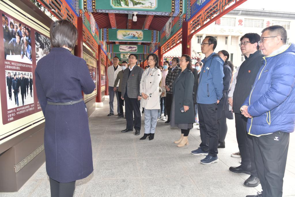 教师党员们走进塔元庄村委会文化长廊、村史馆,一张张珍贵的照片记录着党和国家领导人对塔元庄的深深牵挂和殷切期望,见证着塔元庄翻天覆地的变迁;通过观看《蝶变塔元庄》纪录片,老师们了解了一个荒滩地贫困村如何发展成为全国闻名的文明村、美丽村、幸福村,体会到乡村振兴战略的伟大意义。