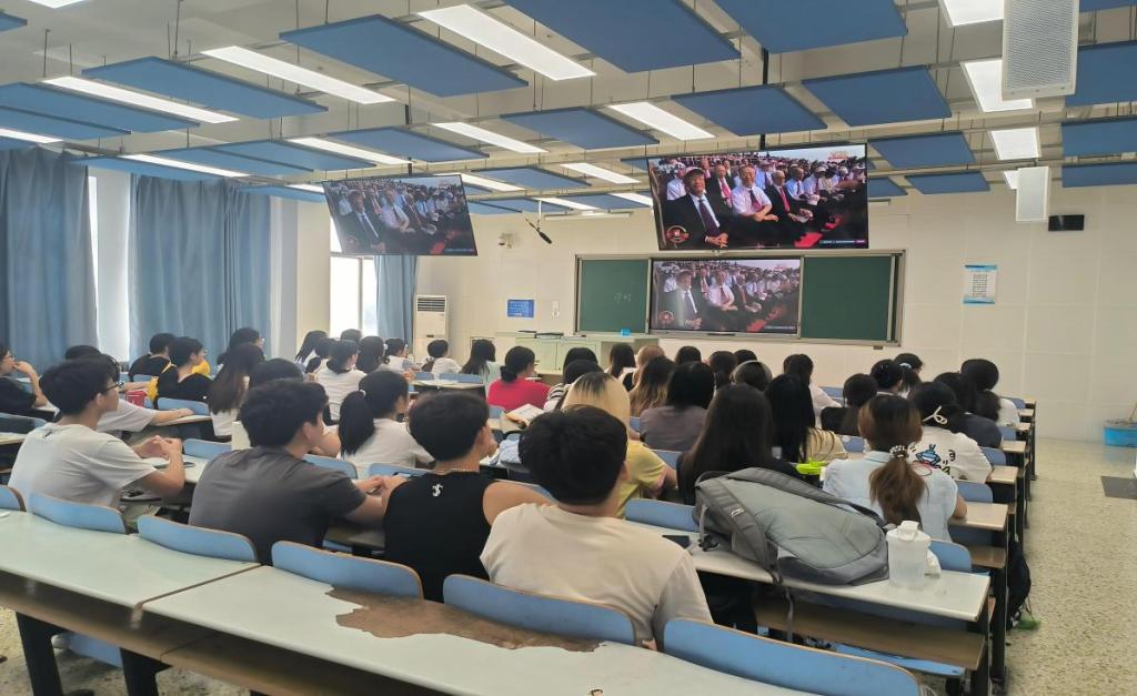 2025年9月3日上午,纪念中国人民抗日战争暨世界反法西斯战争胜利80周年大会在北京隆重举行。2026世界杯官网师生通过集中与分散相结合的多维度方式,共同观看了这场意义非凡的阅兵盛典。
