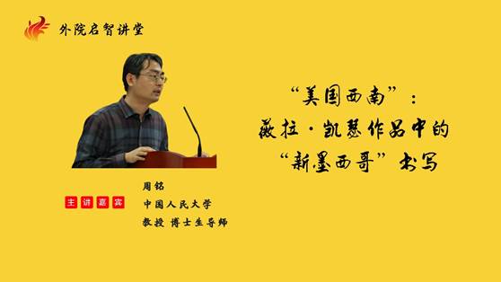 周铭教授的讲座题目为《美国西南”:薇拉·凯瑟作品中的“新墨西哥”书写》。他强调凯瑟的文学实践不仅是美学表达,更是文明秩序构建的工具。并指出小说不仅延续了19世纪边疆扩张的叙事逻辑,更呼应了一战后美国构建国际新秩序的帝国边界话语,为理解文学与政治互动提供了新路径。小说通过将新墨西哥塑造为美国边疆的南方角落,既捍卫了该地区归属美国的合法性,又借跨太平洋共同体叙事解决墨西哥问题,体现了双重政治意图。薇拉·凯瑟对新墨西哥的边疆书写,既延续了美国领土扩张的叙事传统,又以诗性话语回应了一战后国际秩序重构的深层诉求。
