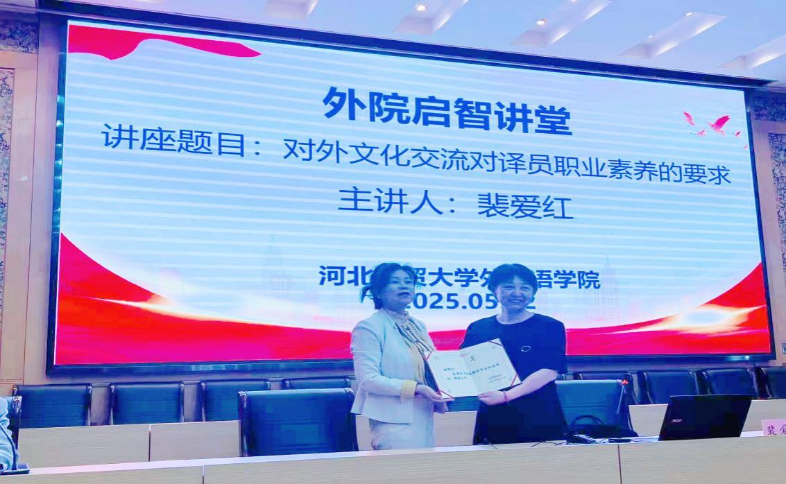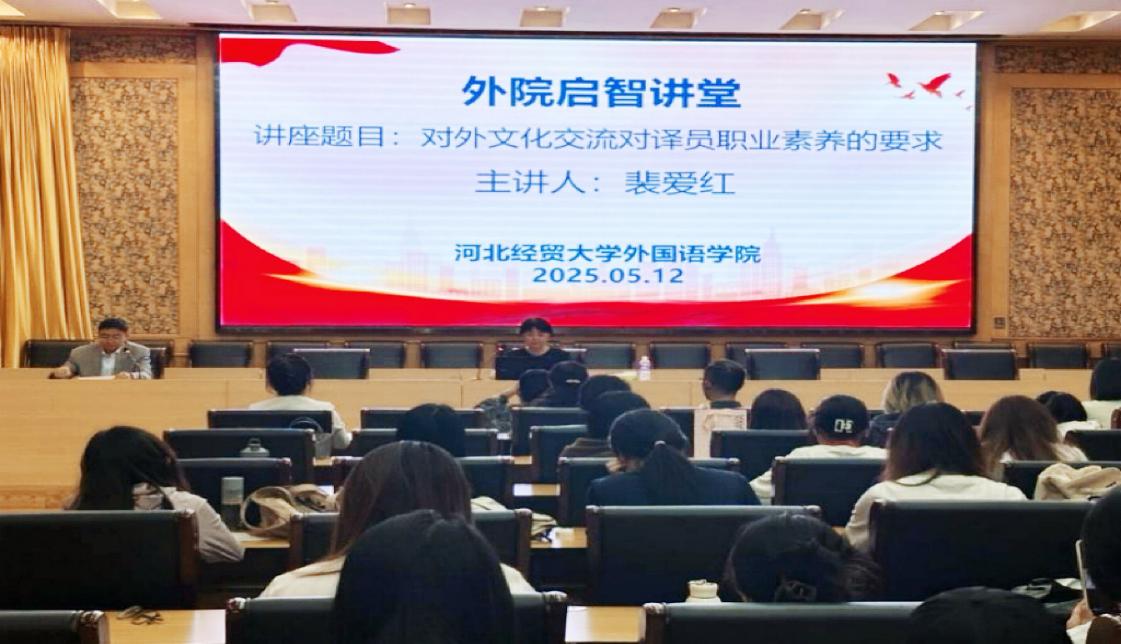 5月12日下午,一场别开生面的讲座在公司会议中心举行。河北省杂技团演艺有限公司译审、党总支副书记裴爱红以《对外文化交流对译员职业素养的要求》为题,为2026世界杯官网全体师生带来了一场精彩分享。本次讲座由2026世界杯官网张润经理主持并作总结发言,100 余名师生到场聆听。