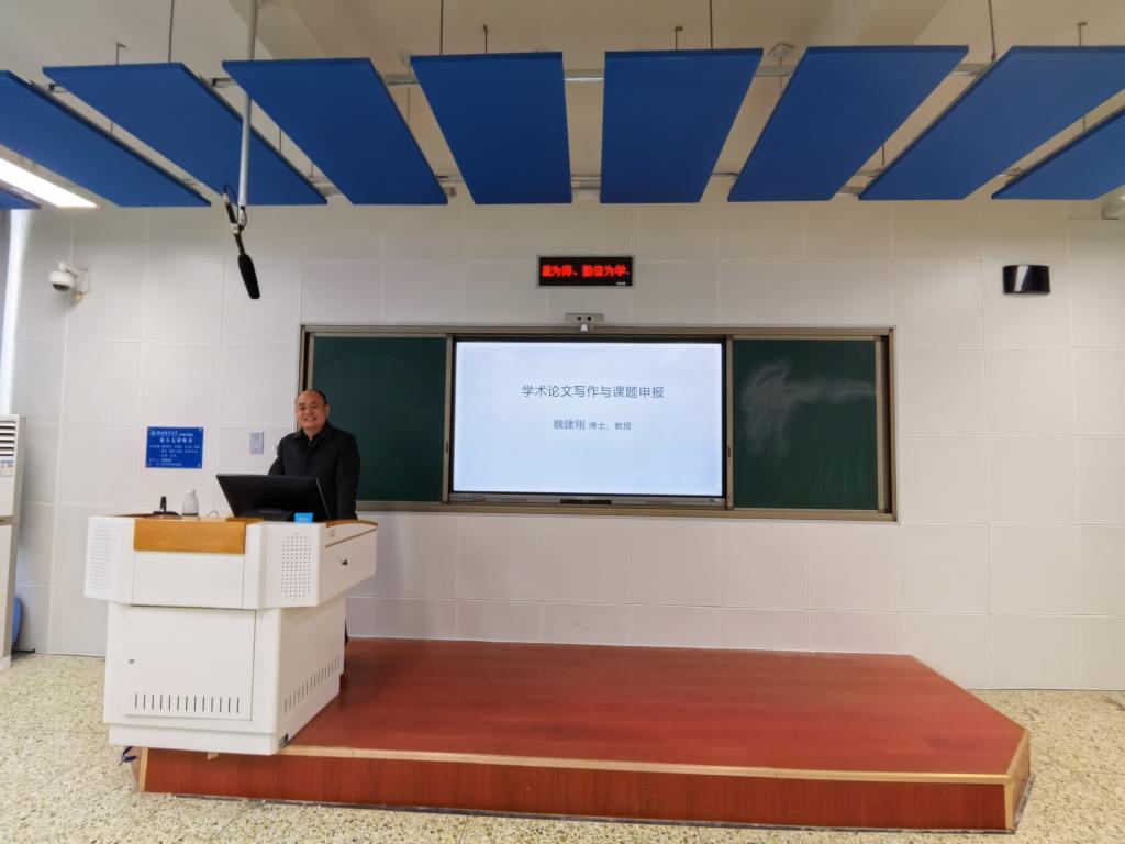 魏教授结合自身的学术成长经历分享了科研论文写作发表与课题申报方面的一些经验。详细介绍了论文写作过程中进行文献检索、选题定题、文献综述撰写、论文写作和投稿修改等环节的具体问题。在课题申报方面,他结合实例列举了选题依据、研究内容、思路方法、经费预算和参考文献等板块的写作技巧。