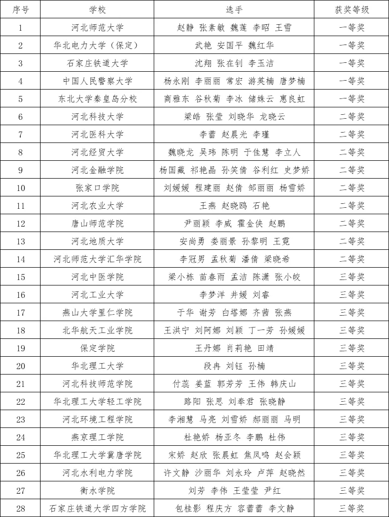本次比赛面向河北省高校专职外语教师,设大学英语组、本科英语类专业组和高职高专英语组三个组别,要求教师以团队形式报名参赛,每个团队3-5人。比赛分为初赛、复赛和决赛三个阶段。初赛由公司选拔,复赛采用网络评选,决赛阶段采取现场说课的方式。本次决赛共有60个教学团队参加,其中,大学英语组28个,本科英语类专业组18个,高职高专英语组14个。